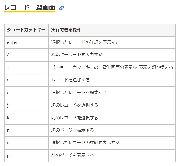 実は、kintoneにもオリジナルのショートカットキーがあるんです!