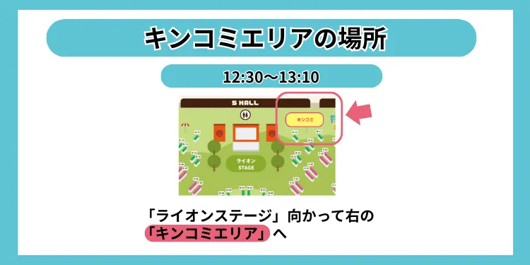 📢両日12:30〜13:10はライオンステージ横のキンコミエリアに集合しよう🤝