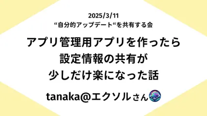 【発表アーカイブ】アプリ管理用アプリを作ったら設定情報の共有が少しだけ楽になった話(tanaka@エクソルさん)【3/11 自分的アップデート共有会】