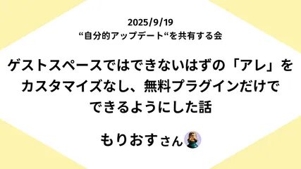 ゲストスペースではできないはずの「アレ」を、カスタマイズなし、無料プラグインだけでできるようにした話(もりおすさん)【自分的アップデート共有会 #6】